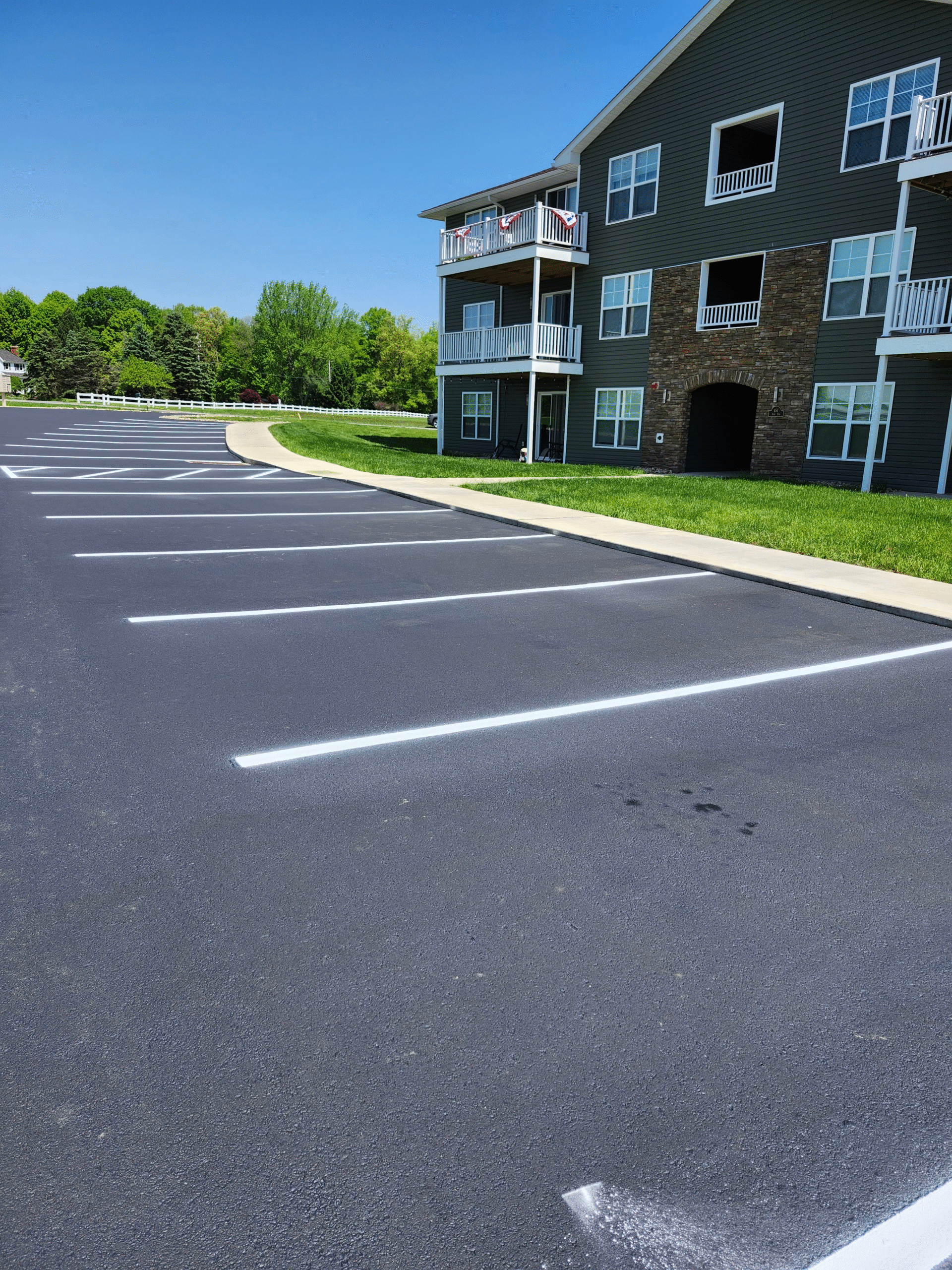 Our Line Striping Pros team will edge the parking lot so that the sealer does not connect with other surfaces that meet the parking lot. We do this because it allows the final product to look professional and provide a great first impression for your customers.